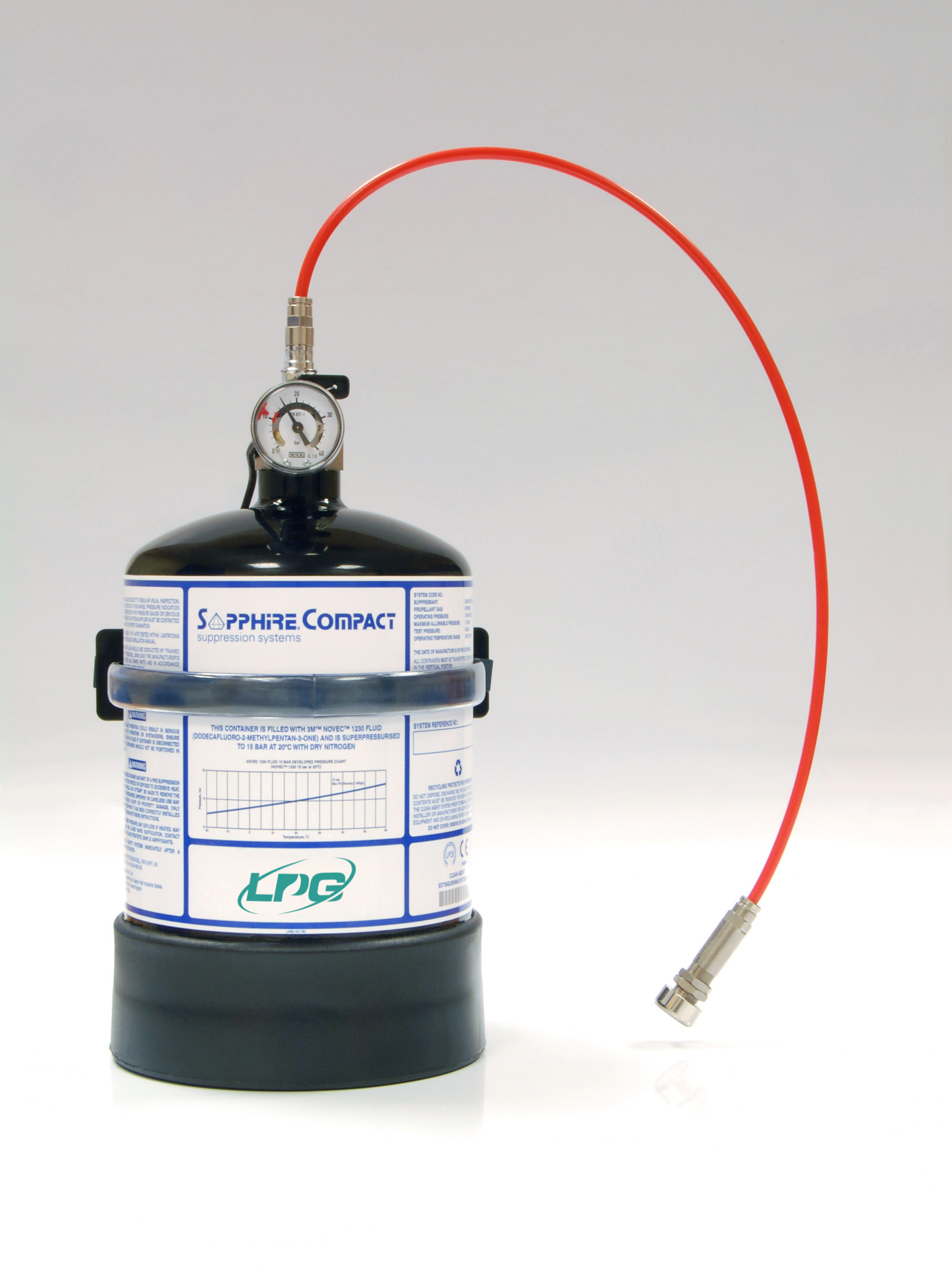 LPG SAPPHIRE COMPACT sistemleri, elektriksel olarak iletken olmayan temiz bir madde olan FK-5-1-12 Yangın Koruma Sıvısı kullanır. Boşaltıldığında, elektronik ekipmana veya üzerinde depolanan verilere zarar vermez ve sıfır ozon tüketme potansiyeline ve ihmal edilebilir küresel ısınma potansiyeline sahiptir.